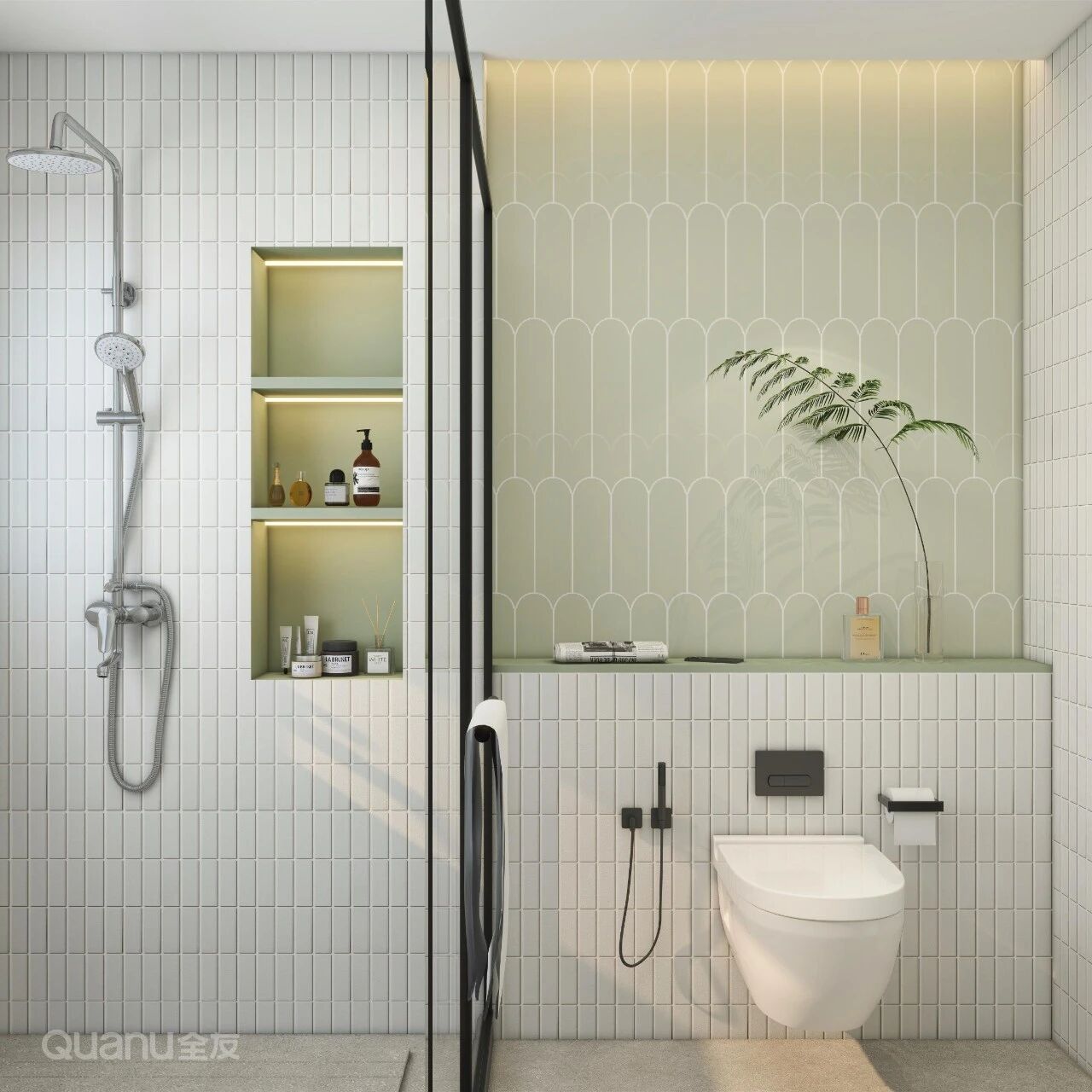 在非承重墙内预留15-20cm进深做壁龛,内贴防水瓷砖,并预留微小坡度以防积水。此外,还可内嵌LED灯带,不仅能补充照明,更能营造空间氛围感。
