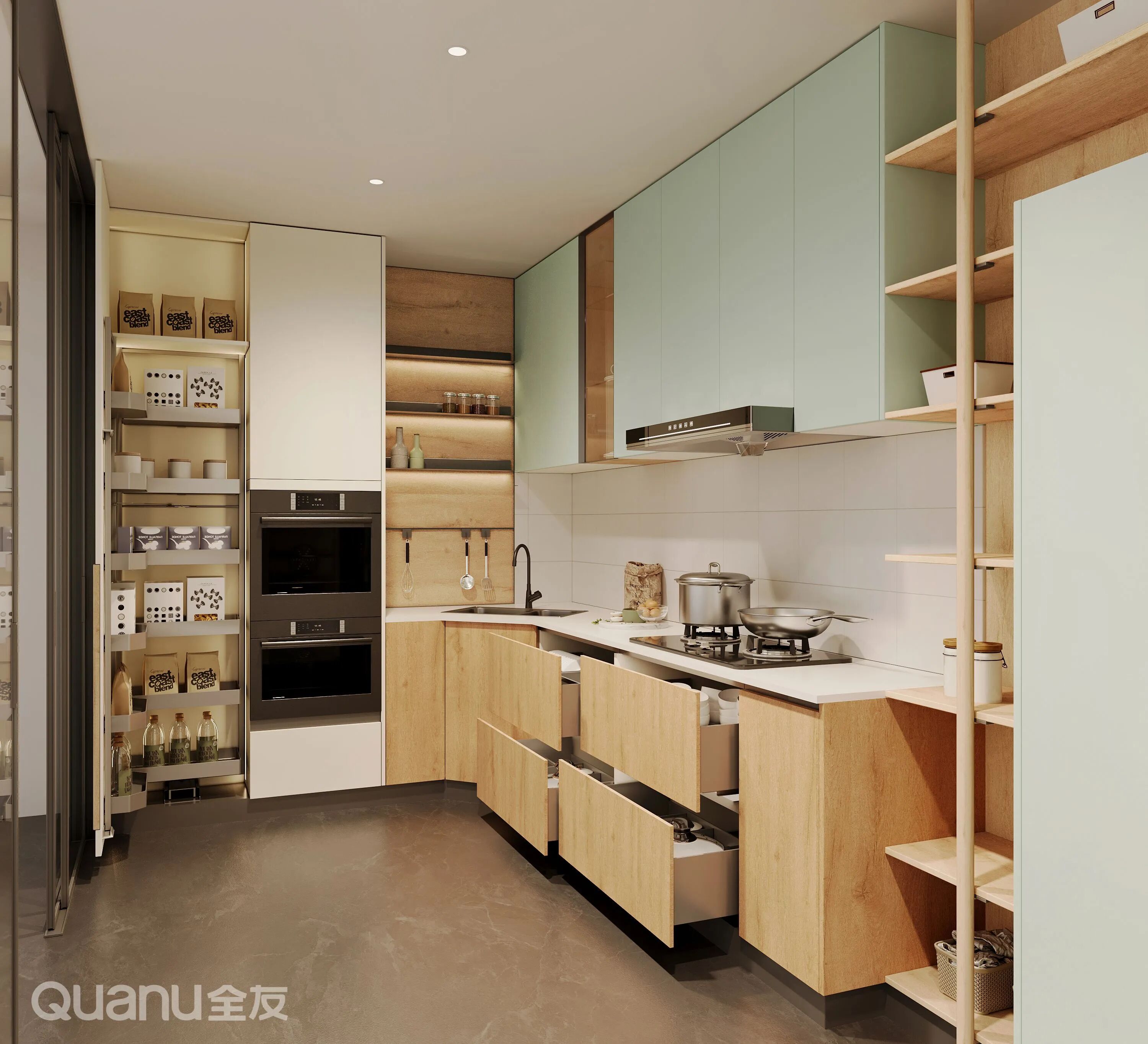 橱柜门内侧安装置物架,利用垂直空间将豆类、调料、零食有序收纳,让厨房告别杂乱;卫浴柜门背面安装薄架,用来收纳洗漱用品、面膜、护肤小样等,不占用额外空间,取用更便捷!