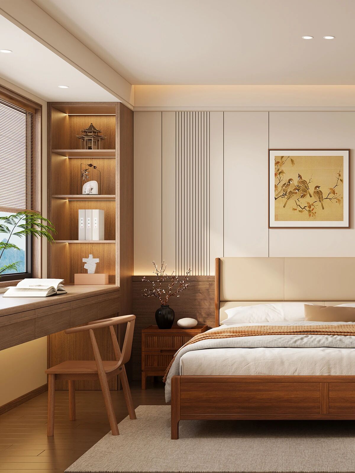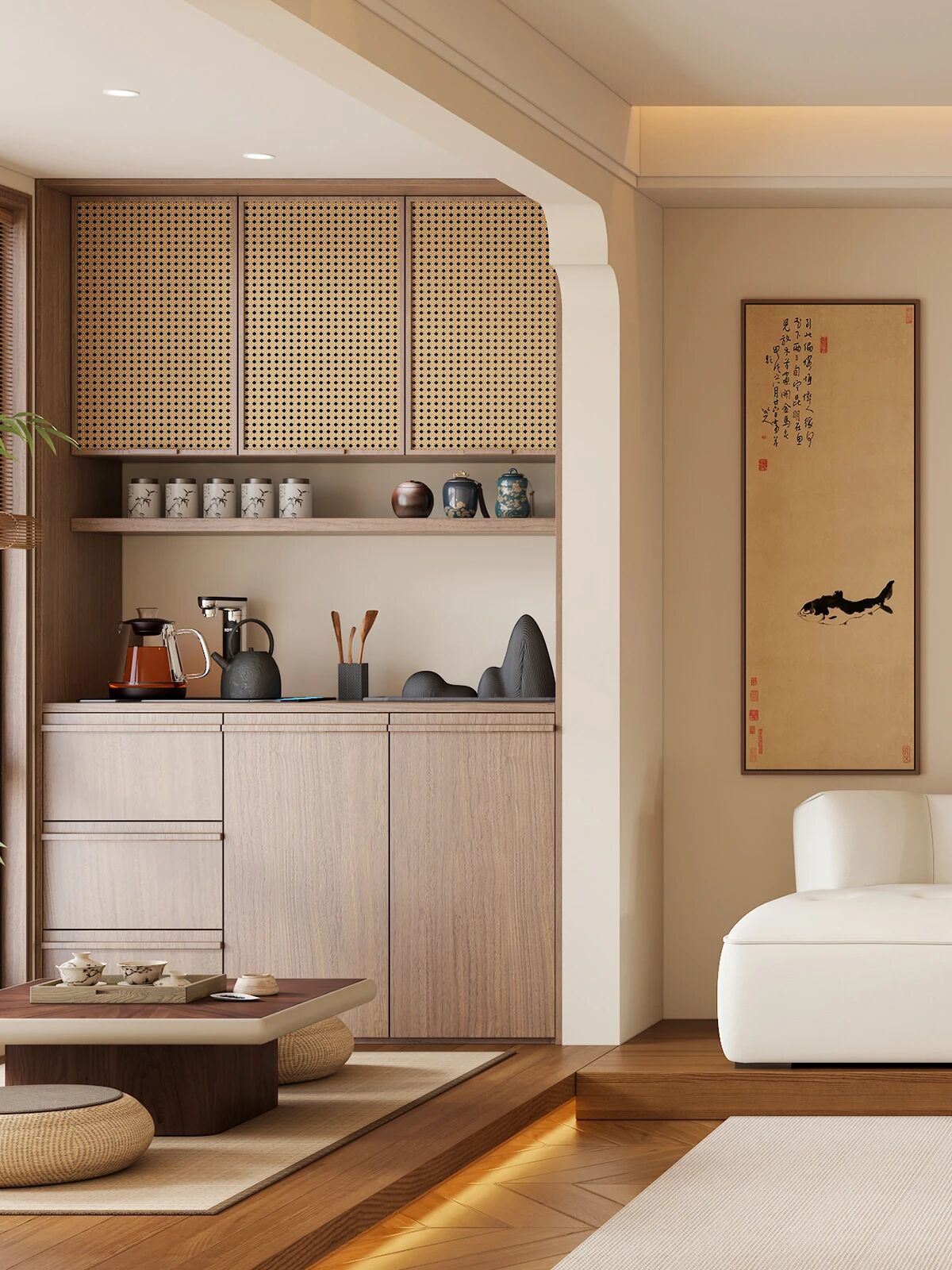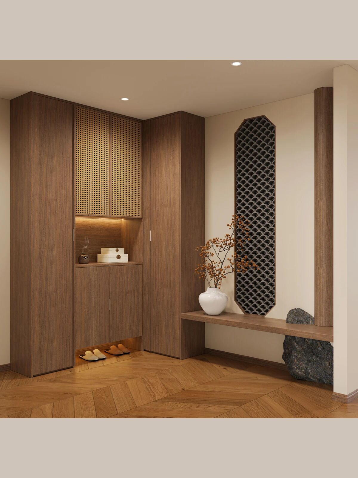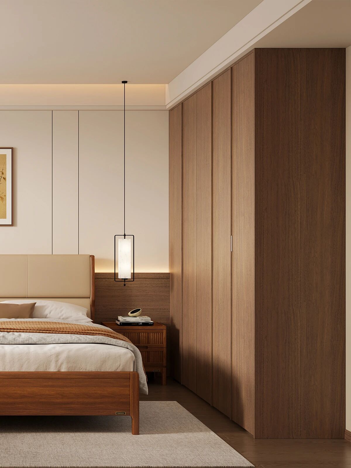 侘寂胡桃木纹🍂与留白墙面形成深浅对比